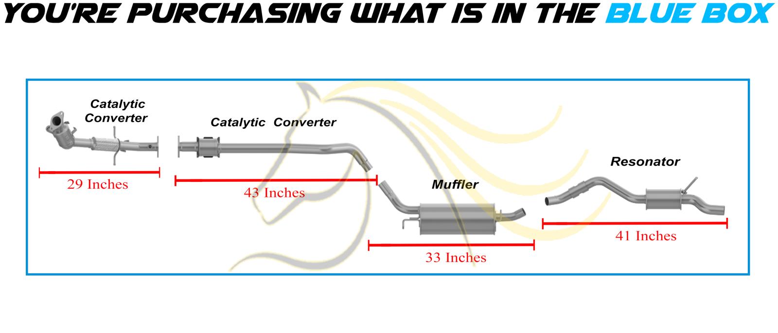 Upgrade with our EPA Approved Front and Rear Catalytic, Muffler and Resonator for durable, rust-resistant performance with clamp,sleeves, gaskets, bolts and nuts included for free.